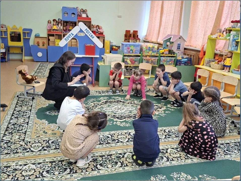 Компанию библиотекарю составил медвежонок Степан! Он ненадолго выбрался из своей уютной берлоги, чтобы рассказать ребятам, как мишки проводят долгую зиму. Из уст медвежонка ребята услышали сказку, которую ему когда-то рассказывала мама-медведица. Это была удивительная история о первом снеге. А также волшебный гость поведал малышам о том, что, оказывается, медведи всю зиму спят и видят сладкие сны под пушистым снежным одеялом! В группе воцарилась настоящая зимняя сказка, ребята слушали так тихо и внимательно, что казалось, даже снежинки за окном замерли вместе с ними.